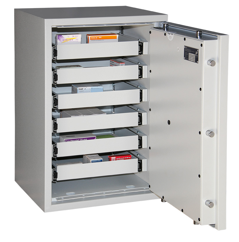 Erfüllt alle Auflagen des § 15 des deutschen Betäubungsmittelgesetzes (BtMG) für einen BTM Tresor, nachdem jeder Teilnehmer am Betäubungsmittelverkehr die in seinem Besitz befindlichen Betäubungsmittel gesondert aufzubewahren und gegen unbefugte Entnahme zu sichern hat.