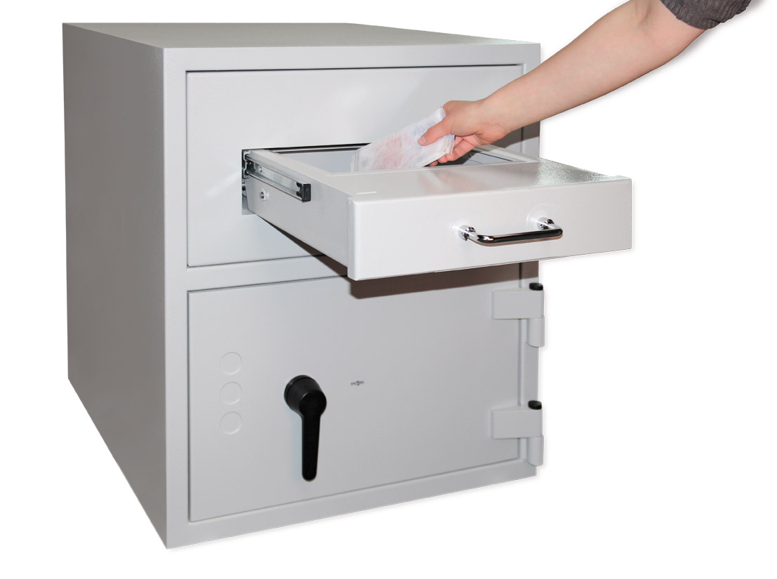 - Das Depositsystem verfügt über ein integriertes Notblockiersystem bei gewaltsamer Manipulation