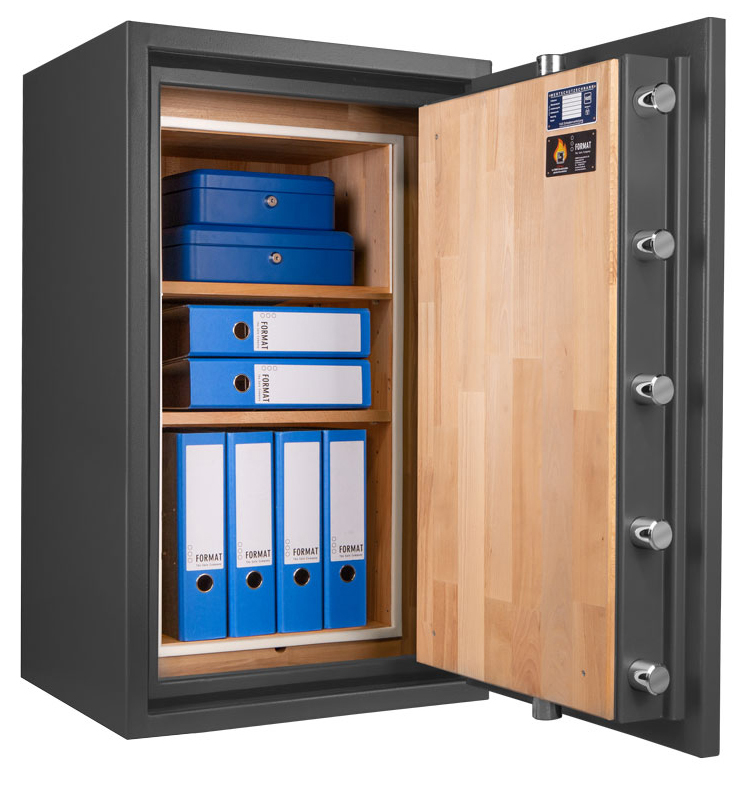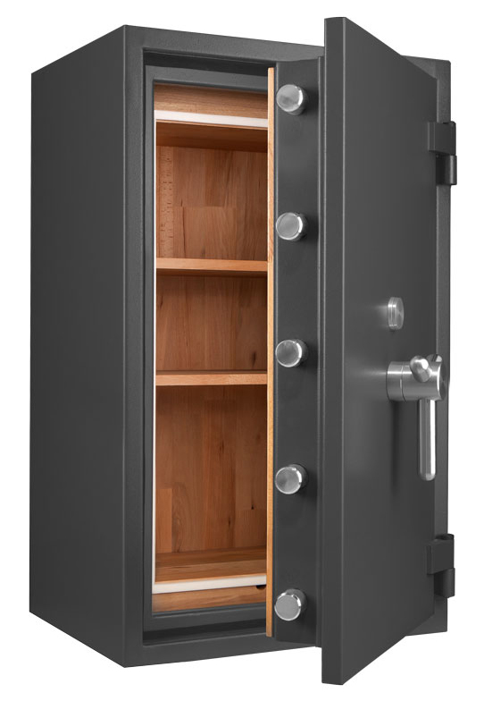 - Höchst widerstandsfähige Türfront und Korpus gegen Angriffe mit mechanischen und thermischen Einbruchwerkzeugen