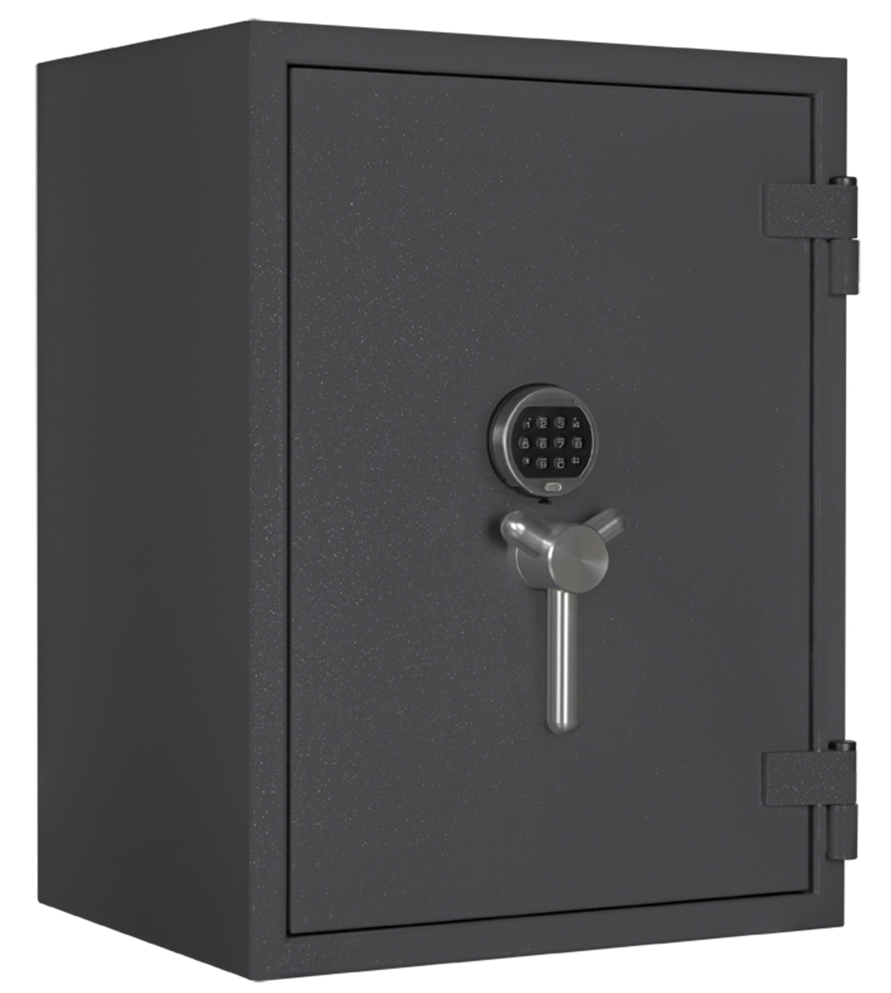 - Höchst widerstandsfähige Türfront und Korpus gegen Angriffe mit mechanischen und thermischen Einbruchwerkzeugen