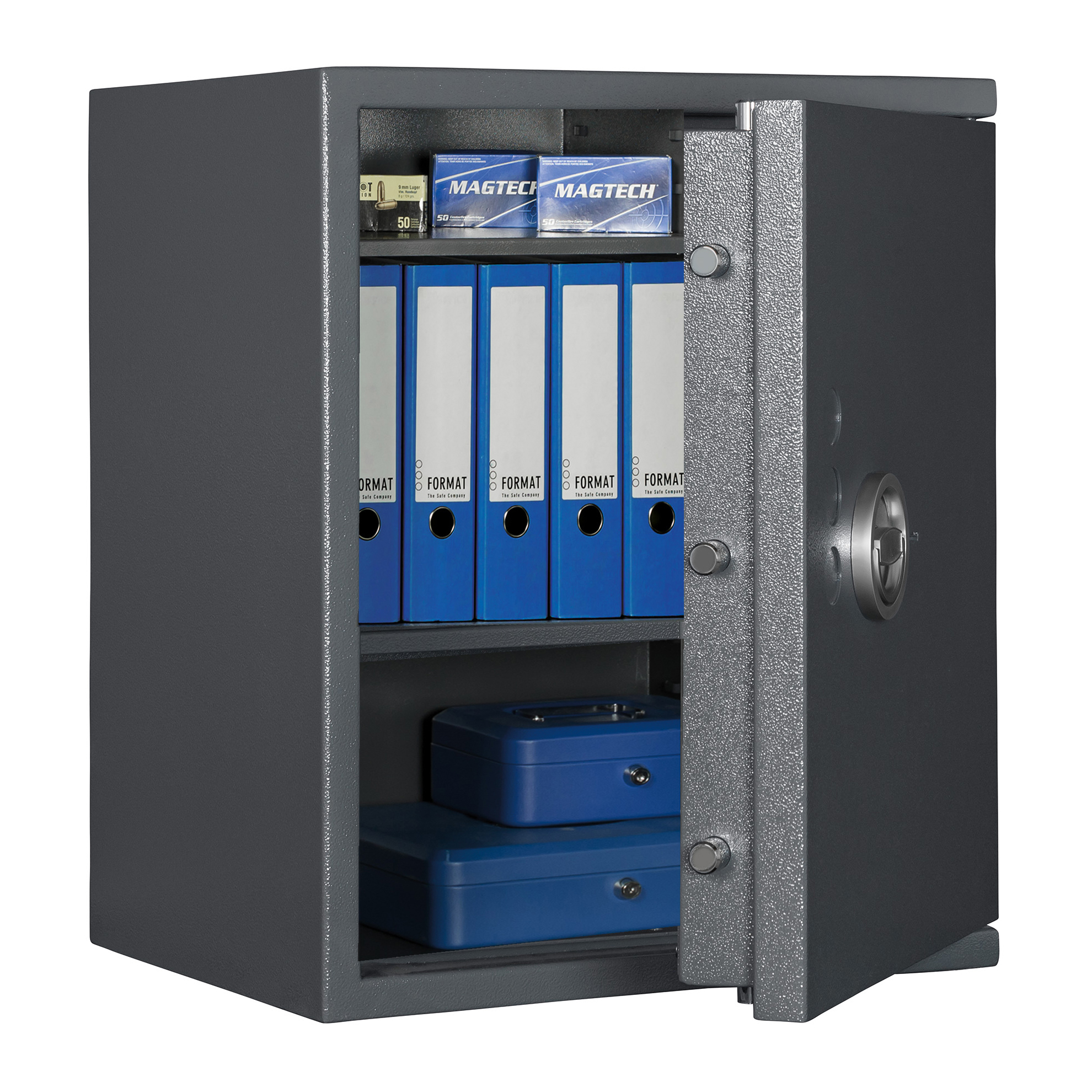 - Türfront und Korpus gegen Angriffe mit mechanischen und thermischen Einbruchwerkzeugen geschützt
