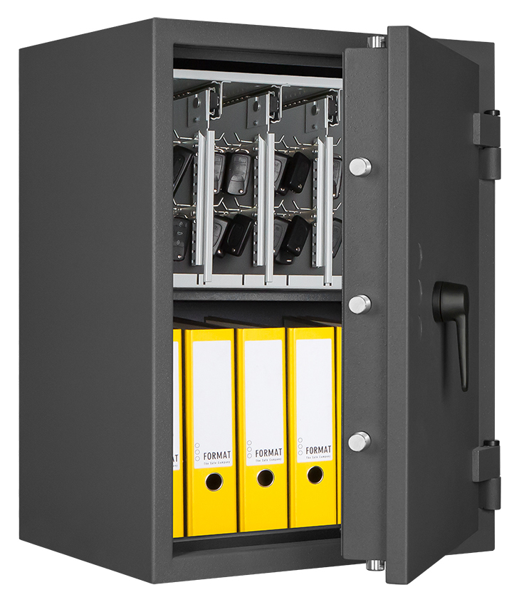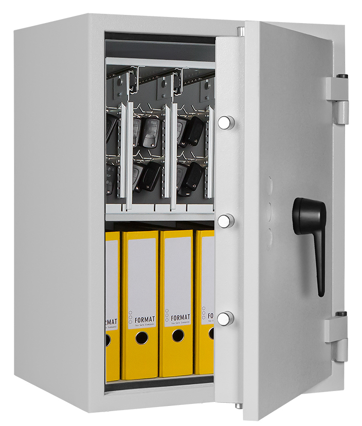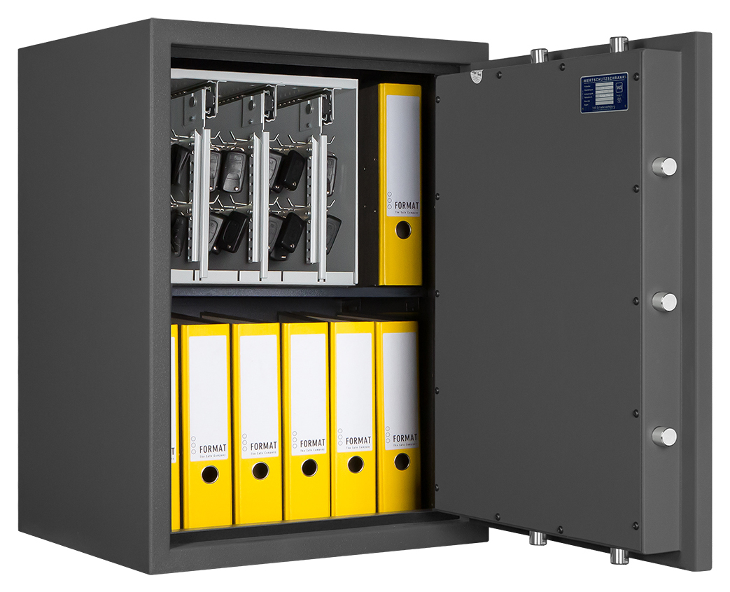 - Höchst widerstandsfähige Türfront und Korpus gegen Angriffe mit mechanischen und thermischen Einbruchwerkzeugen