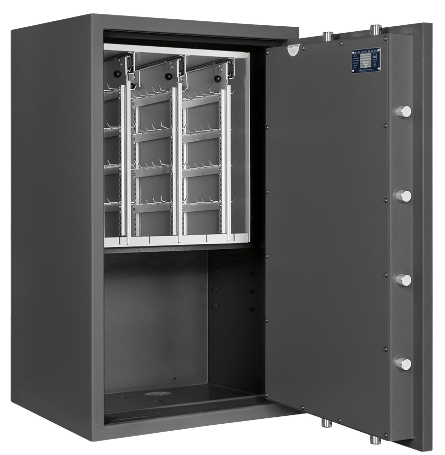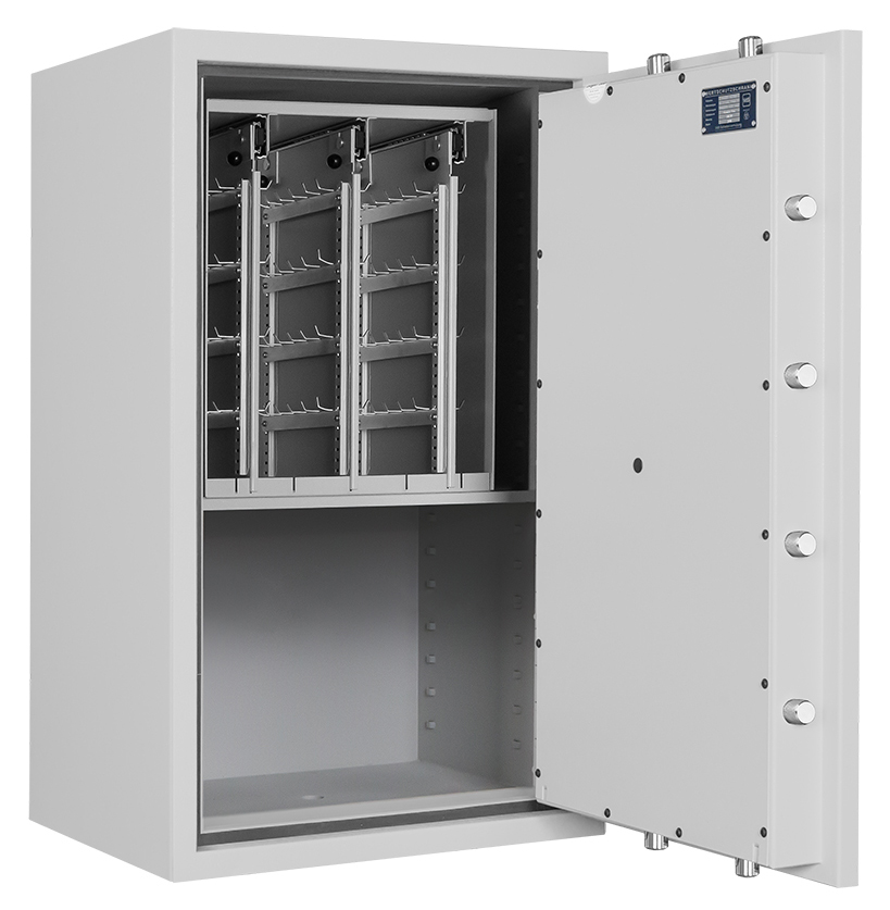 - Höchst widerstandsfähige Türfront und Korpus gegen Angriffe mit mechanischen und thermischen Einbruchwerkzeugen
