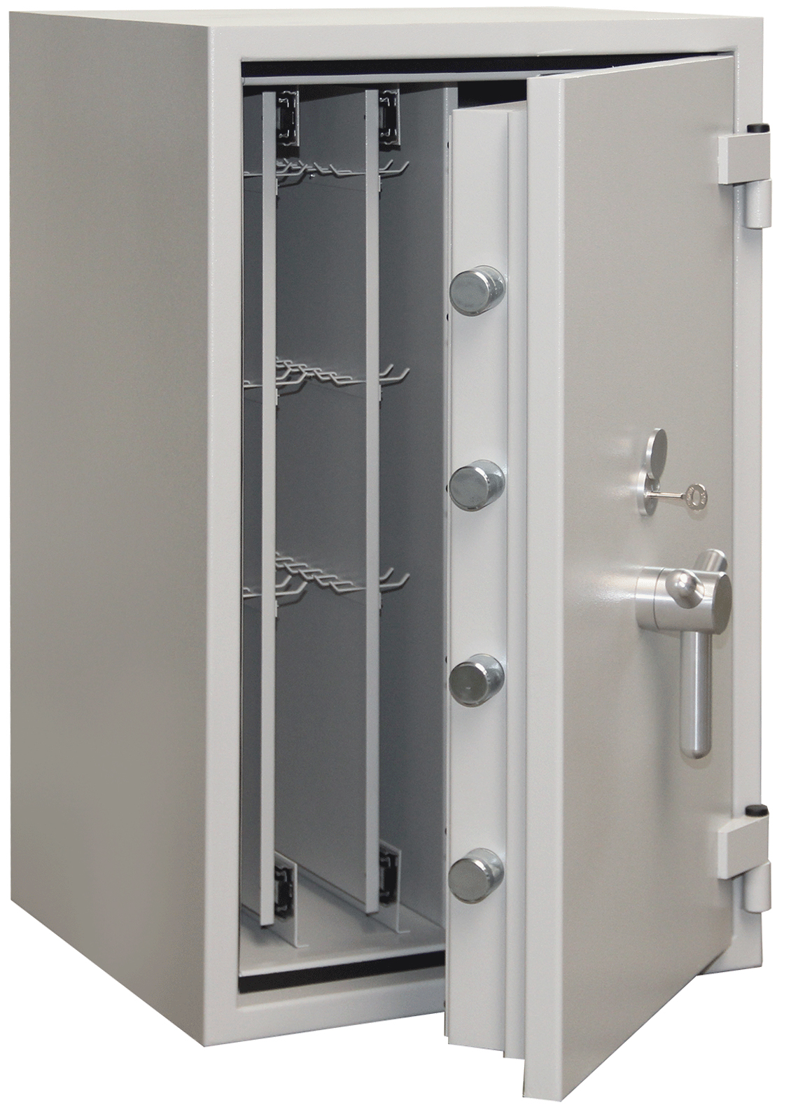 - Höchst widerstandsfähige Türfront und Korpus gegen Angriffe mit mechanischen und thermischen Einbruchwerkzeugen