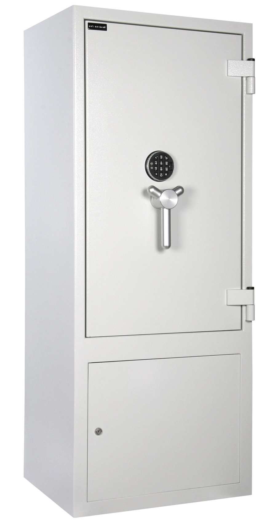 - Höchst widerstandsfähige Türfront und Korpus gegen Angriffe mit mechanischen und thermischen Einbruchwerkzeugen