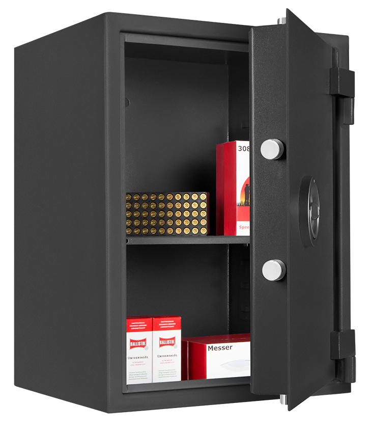 Nach §36 Waffengesetz dürfen Sie ín diesem Munitionsschrank Ihre Munition aufbewahren. Ideal als Ergänzung zu einem Waffenschrank.