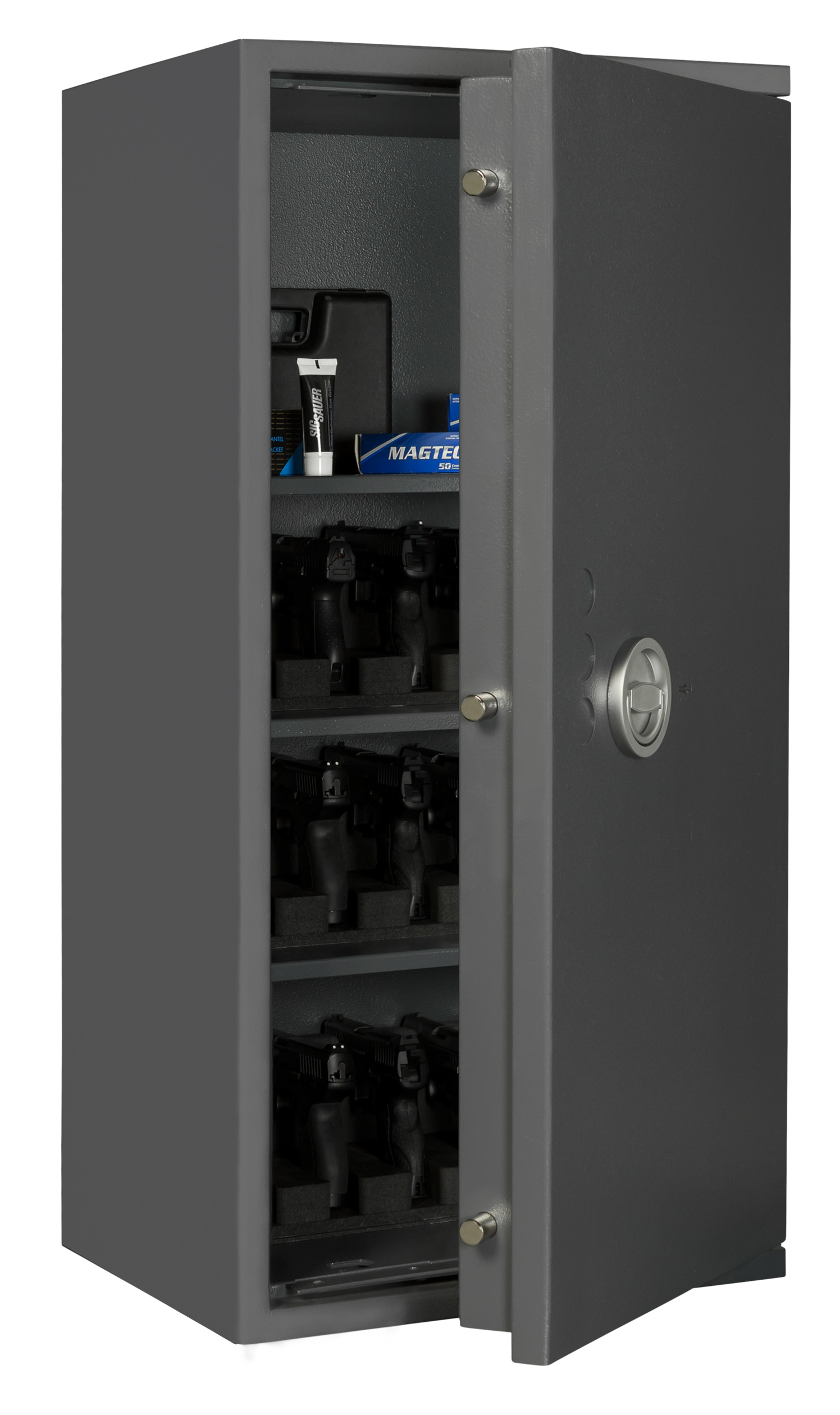 Nach §36 Waffengesetz (Aktuellster Stand 2024) dürfen Sie in diesem Kurzwaffenschrank Ihre Kurzwaffen und Ihre Munition zusammen aufbewahren.