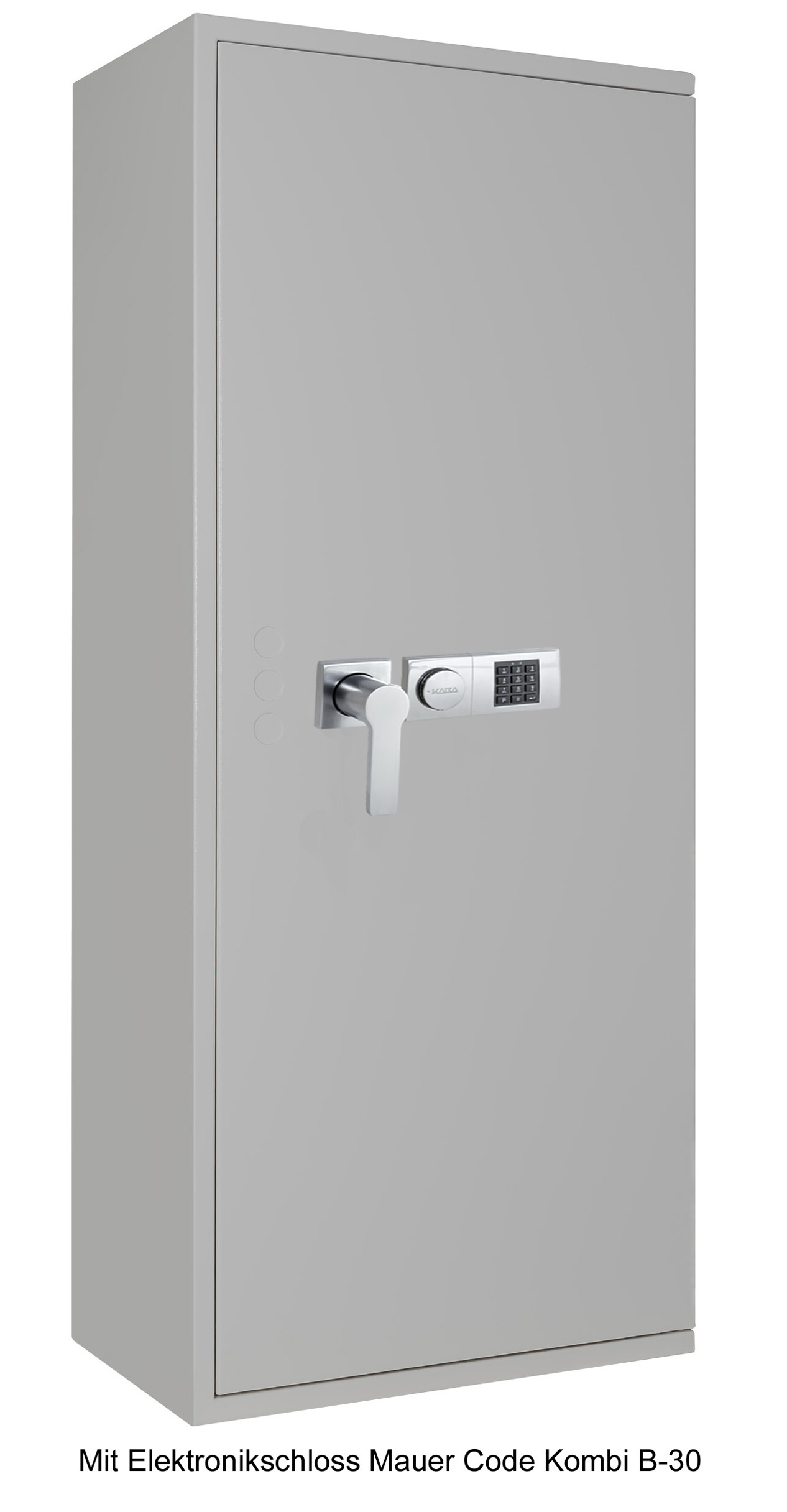 3. Beim Elektronikschloss Mauer Code-Combi B-90 erfolgt die Eingabe der Zahlenkombination ebenfalls über die Tastatur und zusätzlich ist dieses Elektronikschloss mit einem Revisionsschloß inklusive einem Notschlüssel ausgestattet. Ihnen stehen zur frei wählbaren Programmierung 1 Mastercode und bis zu 90 verschiedene Benutzercodes zur Verfügung. Der Batteriewechsel erfolgt von außen über ein Batteriefach.