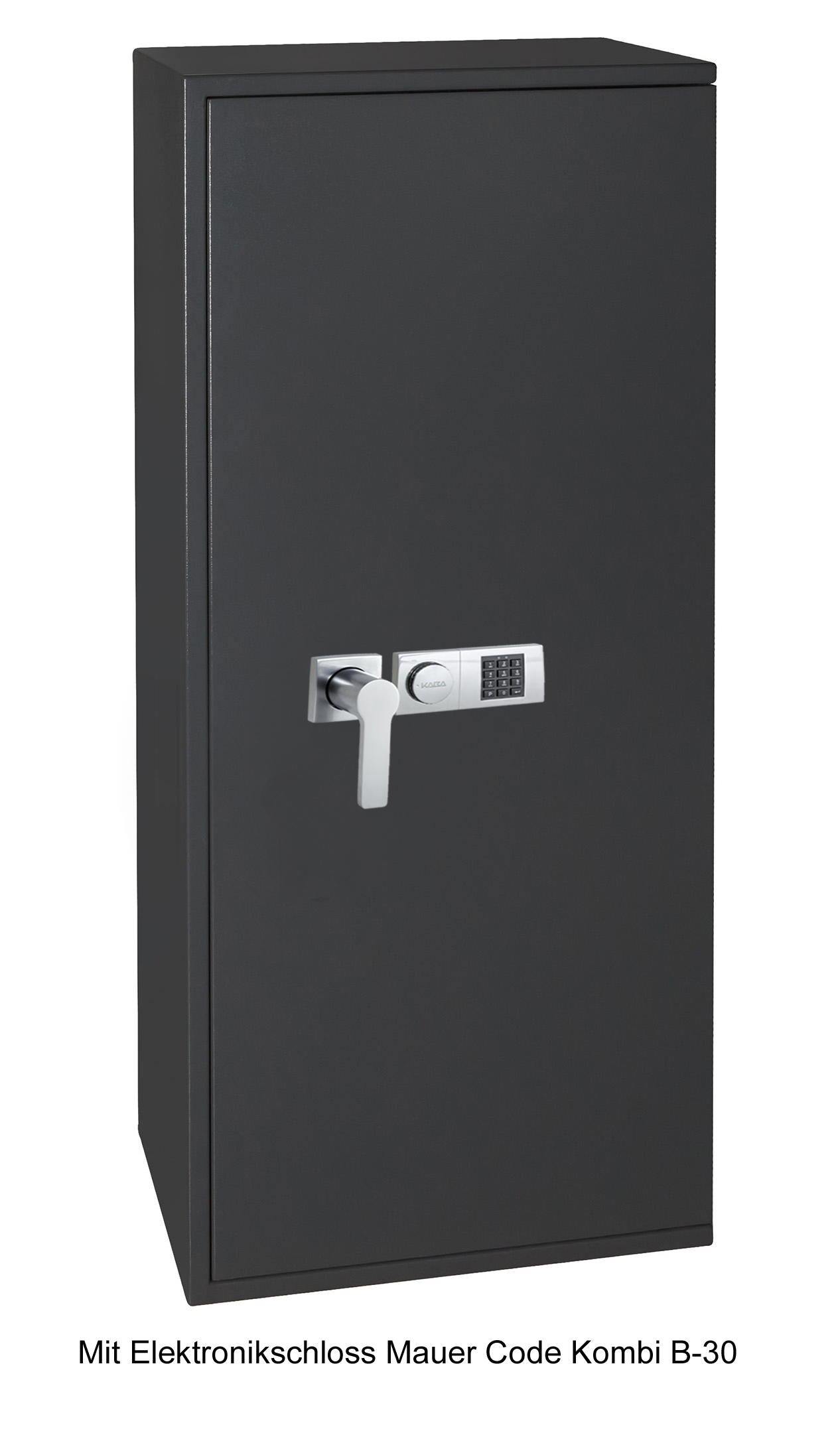 - Optional mit Elektronischem Zahlenschloss S & G mit Tastatur (6-stelliger Zahlencode, jederzeit änderbar, Batteriewechsel außen)