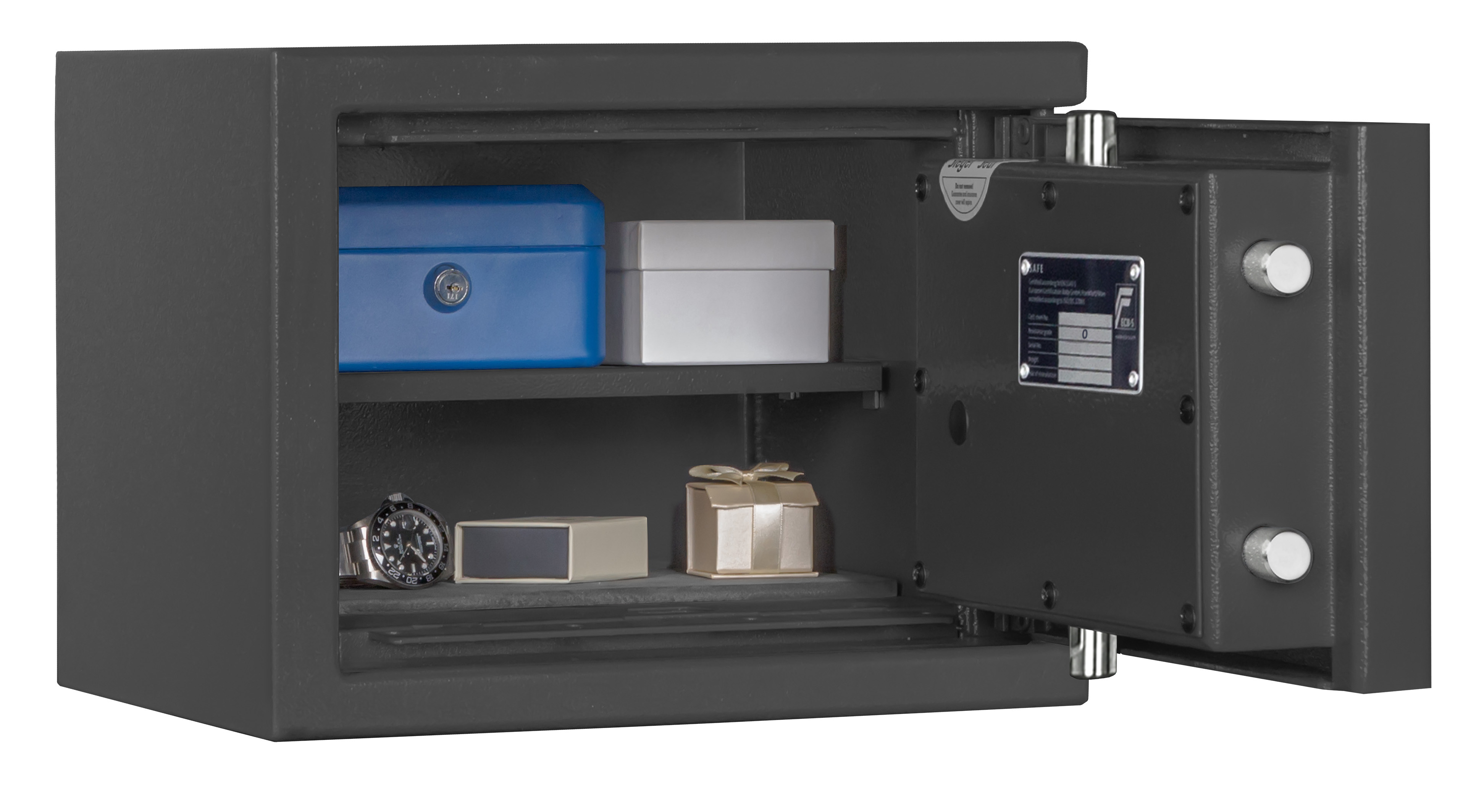 - Türfront und Korpus gegen Angriffe mit mechanischen und thermischen Einbruchwerkzeugen geschützt