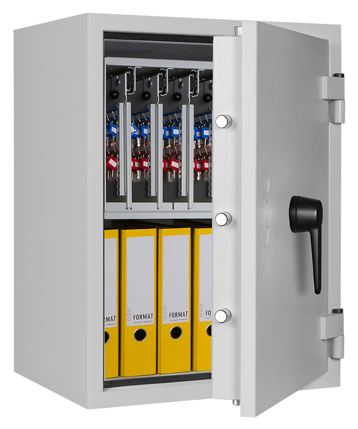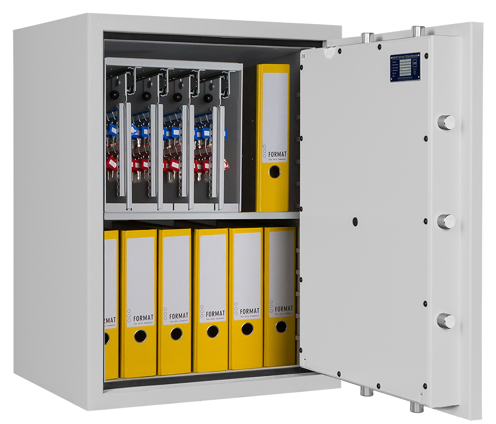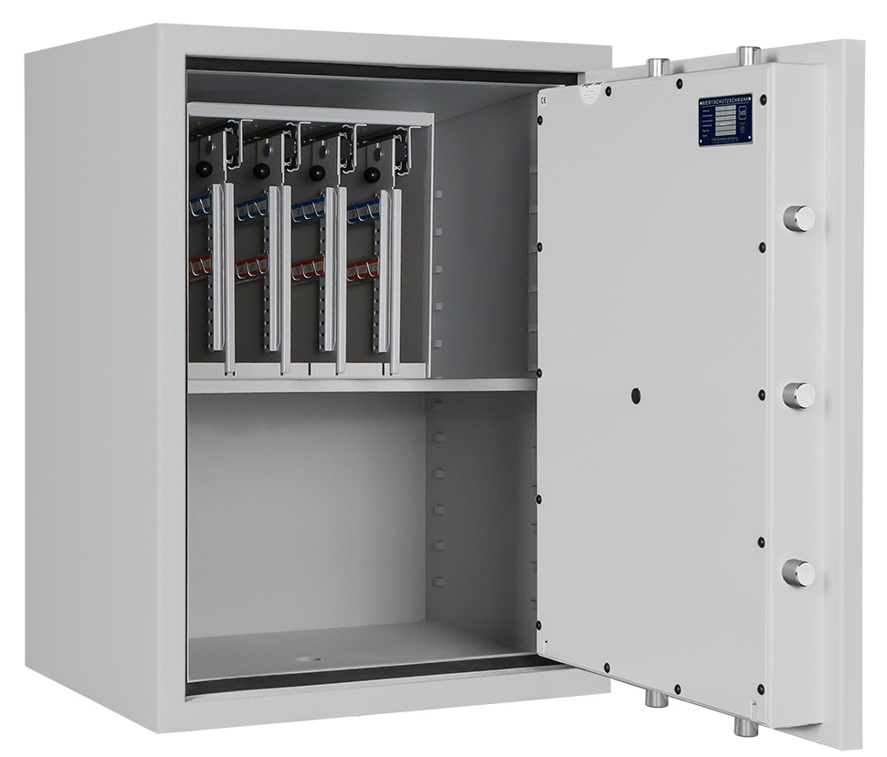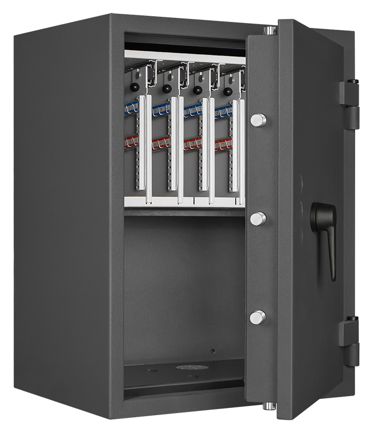 - Höchst widerstandsfähige Türfront und Korpus gegen Angriffe mit mechanischen und thermischen Einbruchwerkzeugen