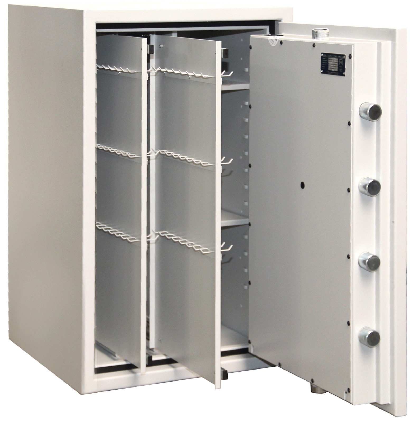 - Höchst widerstandsfähige Türfront und Korpus gegen Angriffe mit mechanischen und thermischen Einbruchwerkzeugen