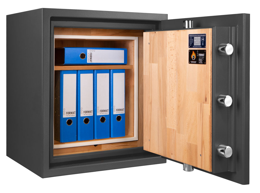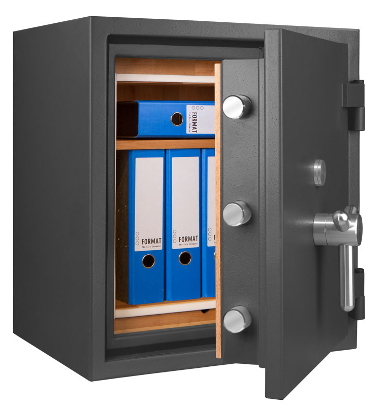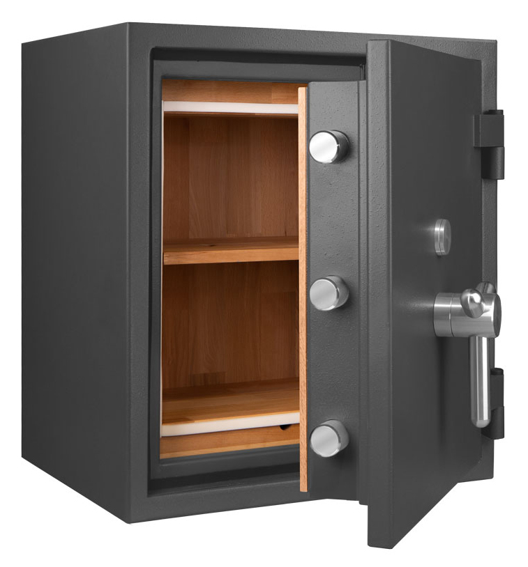 - Höchst widerstandsfähige Türfront und Korpus gegen Angriffe mit mechanischen und thermischen Einbruchwerkzeugen