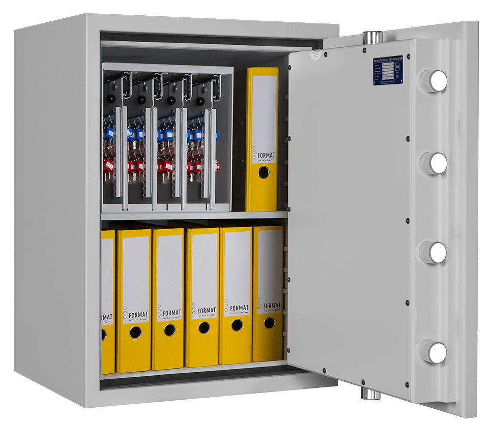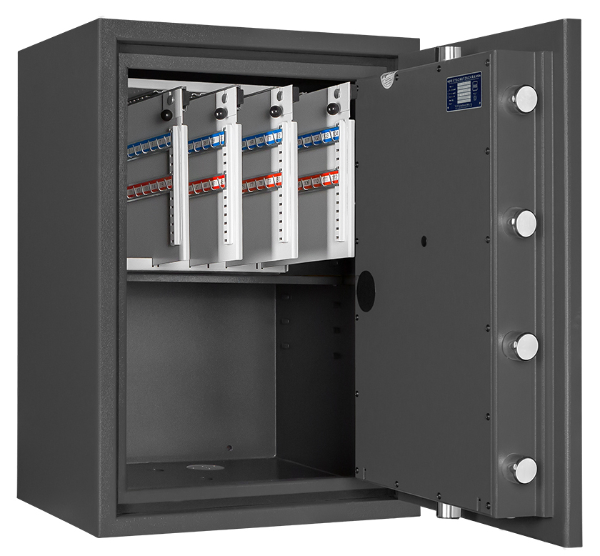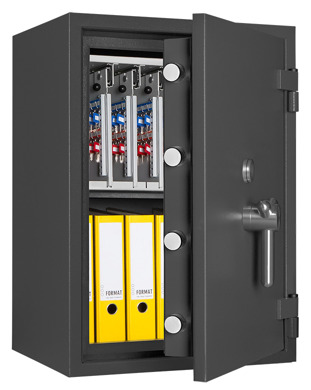 - Höchst widerstandsfähige Türfront und Korpus gegen Angriffe mit mechanischen und thermischen Einbruchwerkzeugen