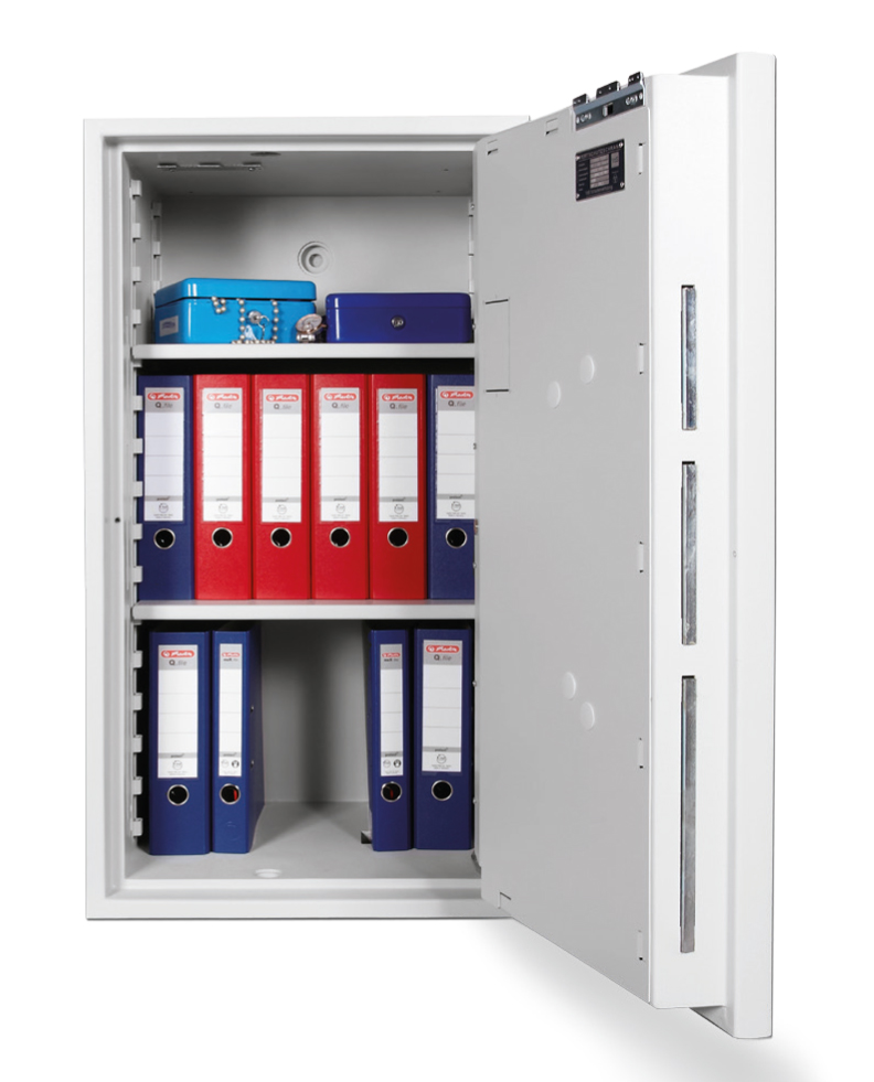 - Höchst widerstandsfähige Türfront und Korpus gegen Angriffe mit mechanischen und thermischen Einbruchwerkzeugen