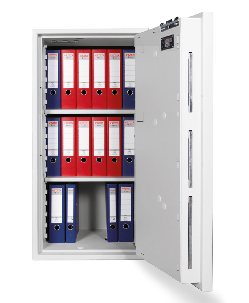 - Höchst widerstandsfähige Türfront und Korpus gegen Angriffe mit mechanischen und thermischen Einbruchwerkzeugen