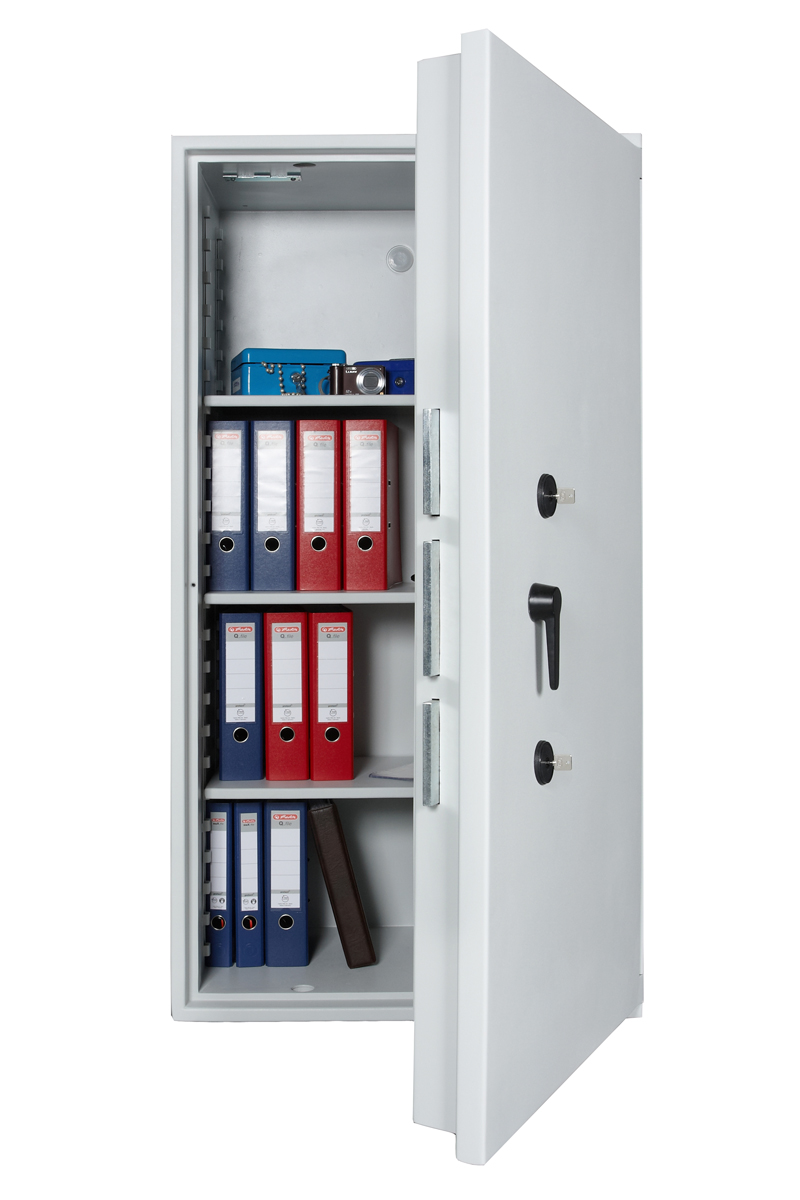 - Höchst widerstandsfähige Türfront und Korpus gegen Angriffe mit mechanischen und thermischen Einbruchwerkzeugen