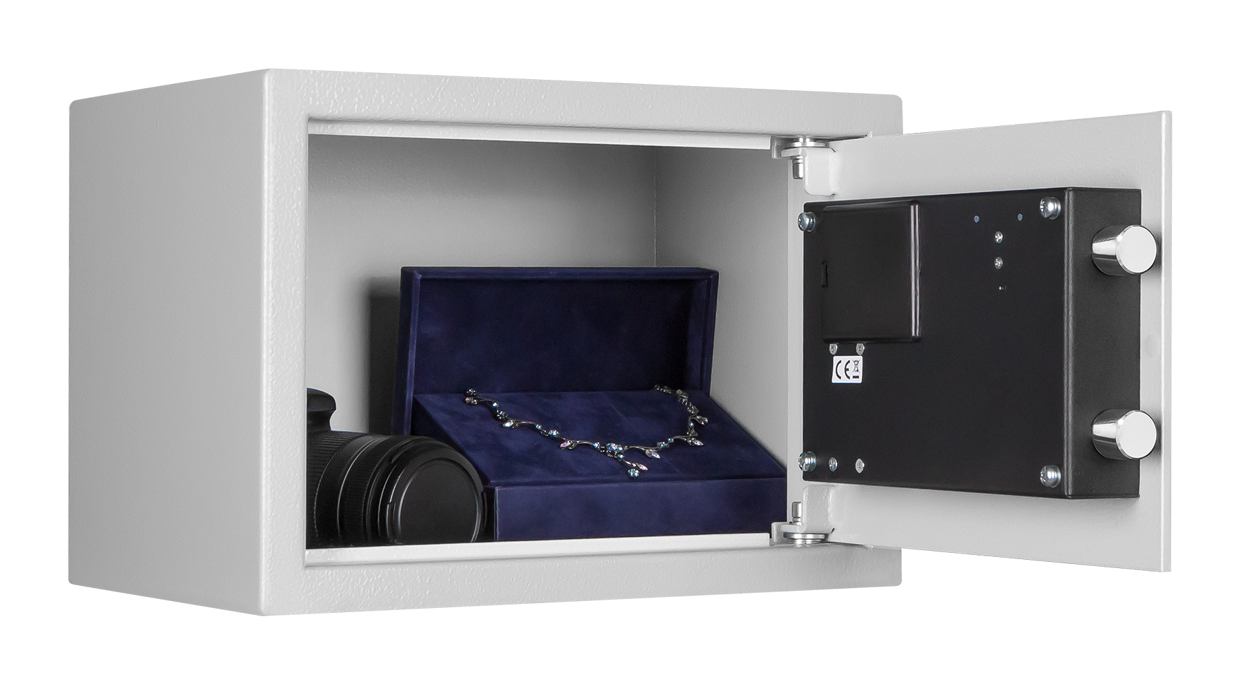 Das serienmäßige Elektronikschloss bietet eine Vielzahl von Programmiermöglichkeiten: 6-stelliges LED-Display für Status und Codeanzeige, 4-stelliger Gästecode, 6 bis 12-stelliger Hotelcode, mit mechanischem Notöffnungsschloss (Zylinderschloss mit 2 Schlüssel), Protokollierung der letzten 100 Schließvorgänge, Verriegelung mittels Motorschloss, inkl. Batterien