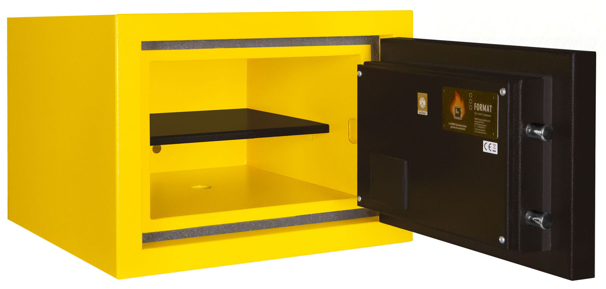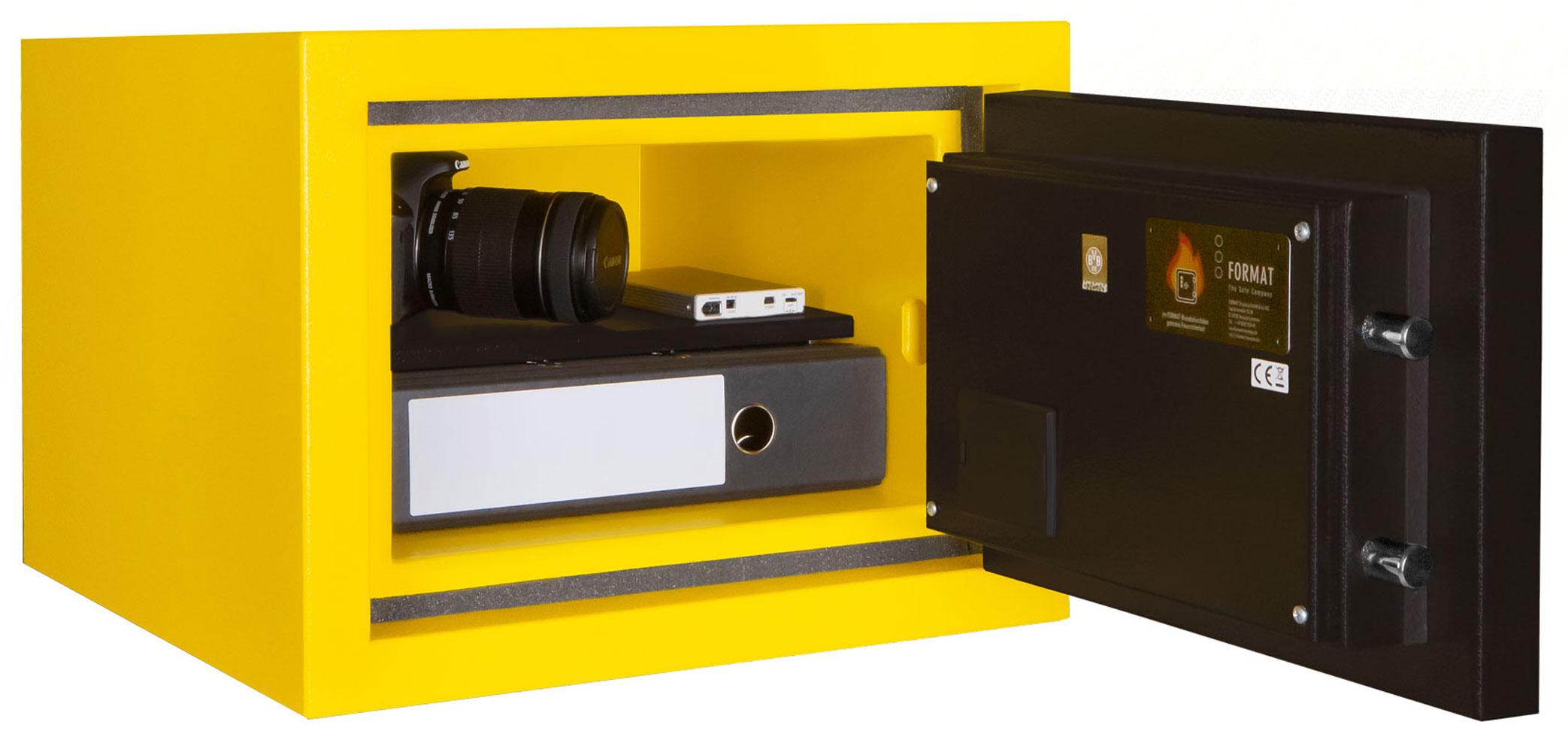 Brandschutz für Dokumente und Papier getestet im FORMAT Prüflabor (mind. 25 Min.). Auch geeignet zur feuerfesten Aufbewahrung von z.B. Festplatten, DVDs oder USB Sticks.